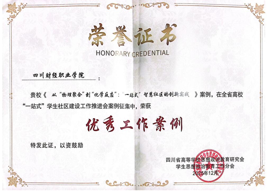 会议同期公布了全省“一站式”学生社区建设优秀工作案例名单。我校报送的《从“物理聚合”到“化学反应”:“一站式”智慧社区的创新实践》案例,凭借鲜明的财经特色、创新的育人模式和显著的建设成效,在众多参评案例中脱颖而出,成功获评全省“优秀工作案例”奖。