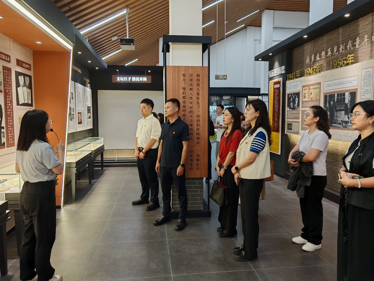 全体党员在讲解员的引导下,依次参观了“巴金家世”“成都巴金故居”“为人民写作”等展区。通过一幅幅珍贵的历史图片、一件件厚重的文献实物以及生动详实的场景复原,同志们深入了解了文学巨匠巴金先生的成长轨迹、创作生涯及其始终与国家和民族命运紧密相连的赤子情怀。巴金先生追求真理、坚守良知、勇于反思、无私奉献的高尚品格,深深触动了在场的每一位党员,也引发了大家对于如何在国双高建设中践行立德树人使命、传承文化精神的深入思考。
