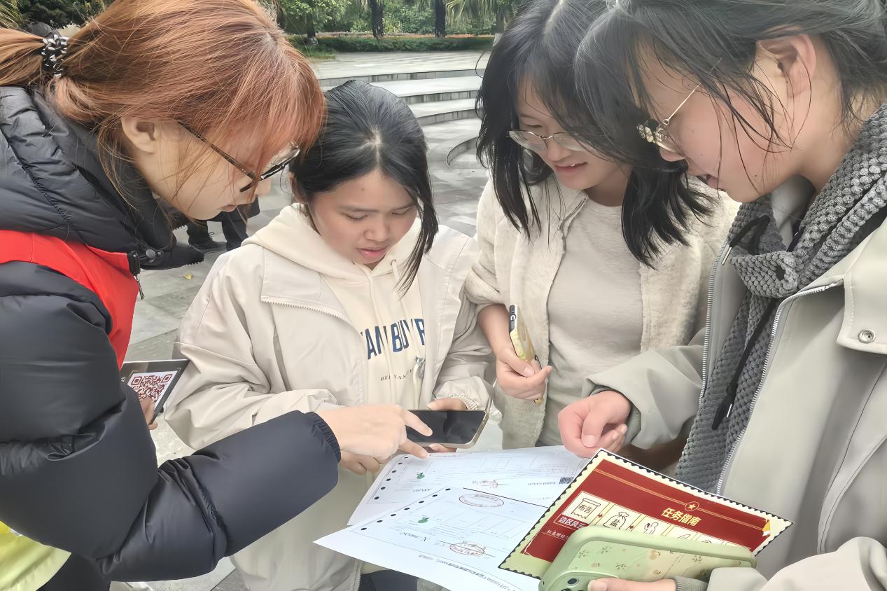 活动现场,每个任务点由财税学院学生志愿者担任NPC,引导体验同学完成互动闯关。从朗读边区布告到辨析私盐真伪,从整合证据链到破解变票迷局,同学们在奔跑中挥洒汗水,在协作中领悟“为国聚财、为民收税”的职业使命。“就像参加了一场税务版的密室逃脱,边跑边学,知识点一下子活起来了!”参与学生如是感慨。