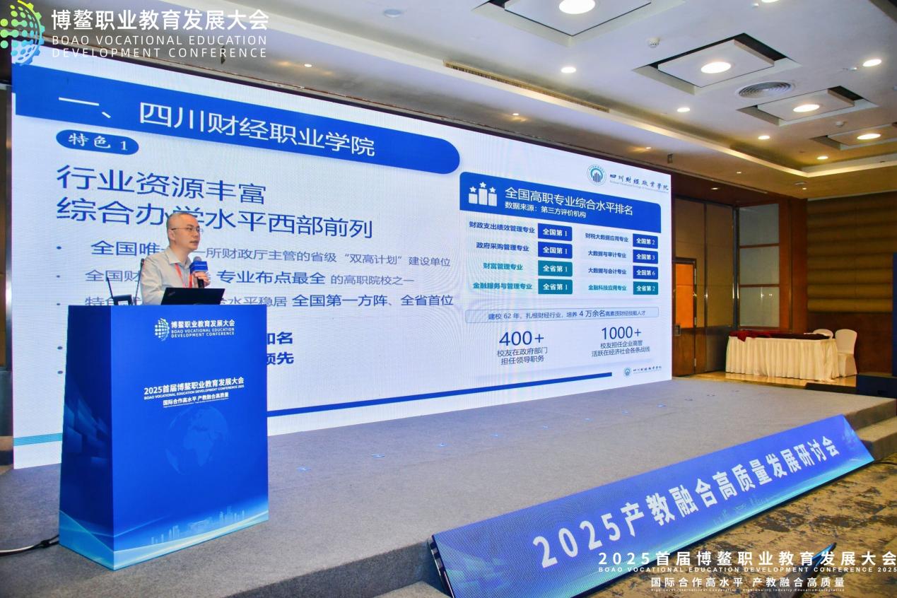 12月7日至8日,2025首届博鳌职业教育发展大会在海南博鳌亚洲论坛国际会议中心隆重举行。本次大会以“融合、创新、协同、发展”为主题,汇聚了国内外职业教育领域的专家学者、院校领导与企业代表,共同探讨新时代职业教育高质量发展的路径与策略。四川财经职业学院财税学院院长杨毅,副院长罗艾,以及专业教研室主任蒋莉蘋、陈翠、朱丹,专任教师张晓萱等受邀参会。