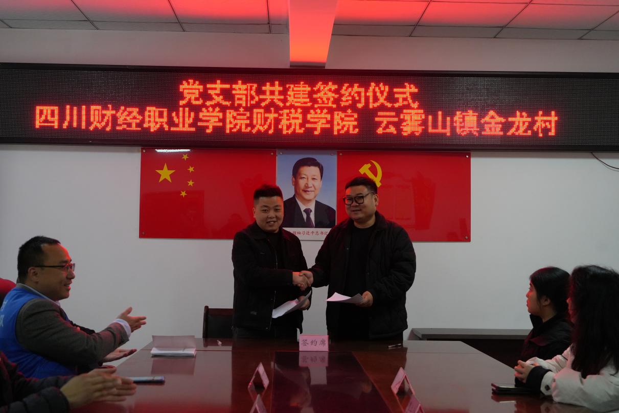 2025年12月2日,四川财经职业学院财税学院与云雾山镇金龙村党支部,举行党支部共建签约仪式,以校地党组织联动为纽带,开启协同助力乡村振兴的新合作。