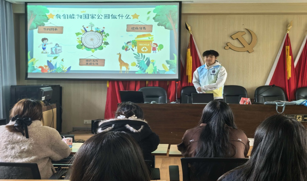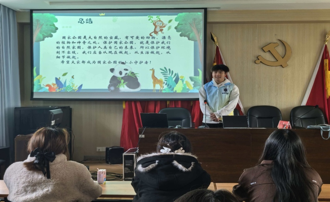 活动伊始,宣讲团以“国家公园的自然宝藏”为主题开启科普之旅。通过精心制作的图文课件与生动影像,成员们将国家公园的广袤景致与珍稀物种娓娓道来,从憨态可掬的保护动物到形态各异的特色植物,把专业生态知识转化为儿童易懂的语言,现场还设置了“找找隐藏物种”互动游戏,迅速点燃了孩子们的探索热情。“为什么国家公园要保护这些植物呀?”面对小朋友的提问,宣讲志愿者结合“生态系统像拼图”的比喻耐心解答,让孩子们直观理解生物多样性的重要意义,在心中种下守护自然的种子。