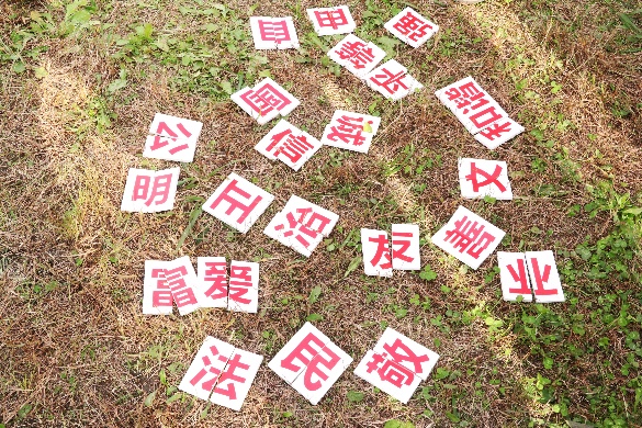 下午,丰富多彩的系列主题协作项目拉开帷幕。“重走长征路”活动中,50名成员分组合力托举长征路线地图,沿红一方面军行进路线平稳运送网球,在反复磨合中锤炼配合默契;“神笔马良”挑战里,各小组成员牵拉绳索操控毛笔,共同书写“天天向上”等正能量词语,在协作中提升专注力;“二十四字社会主义核心价值观拼字”比拼环节,大家争分夺秒完成拼字任务,充分展现团队应变能力与知识储备。一系列的活动有效强化了成员们的团队协作与执行能力。