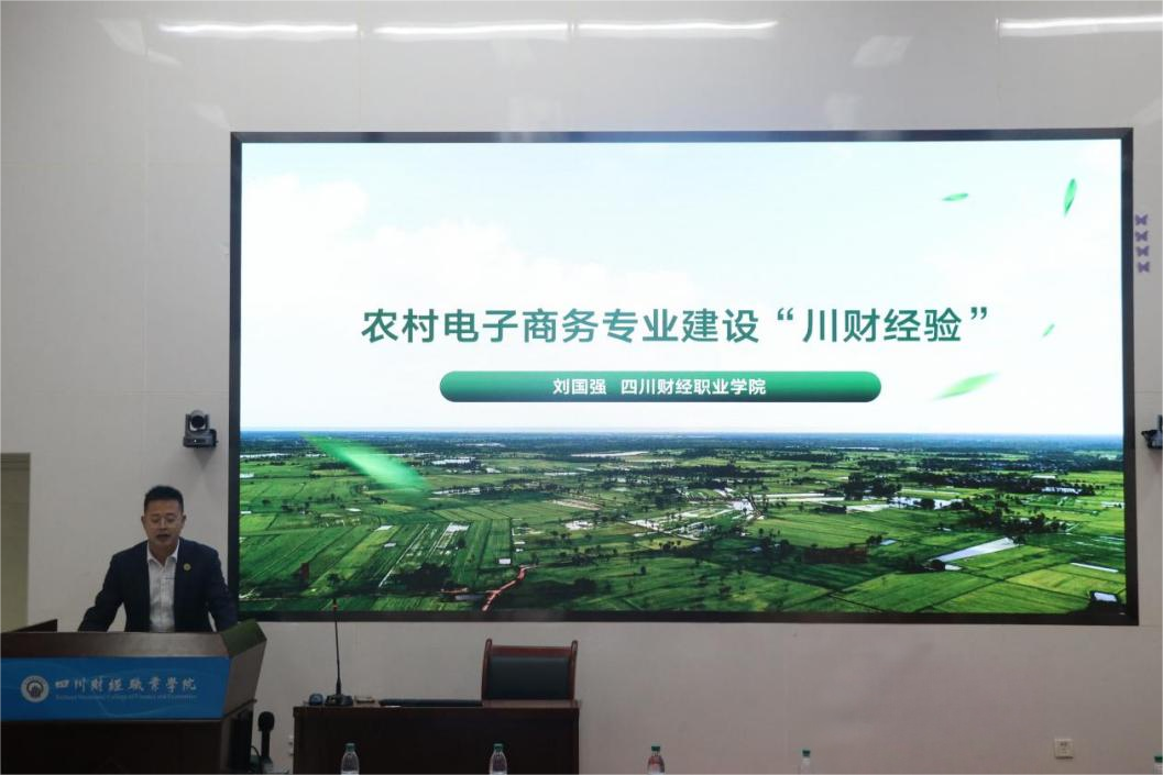 四川财经职业学院农村电商教研室主任、现代商贸研究中心副主任刘国强系统介绍了我校农村电商专业的建设情况。他从专业概况、专业特色、发展瓶颈以及未来工作计划等方面,全面分享了“川财经验”,为同类院校专业建设提供了参考。
