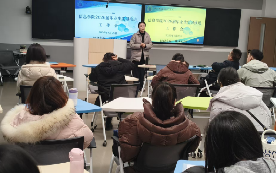 2026年1月26日下午13:50,信息学院在B106教室组织召开2026届毕业生实习推进工作会。会议旨在进一步落实毕业生实习与就业工作,加强教学与学工协同联动,全面掌握学生动态,扎实推进实习就业相关任务。信息学院院长陈世平、副院长王曦、各专业教研室主任、毕业班辅导员及实习指...