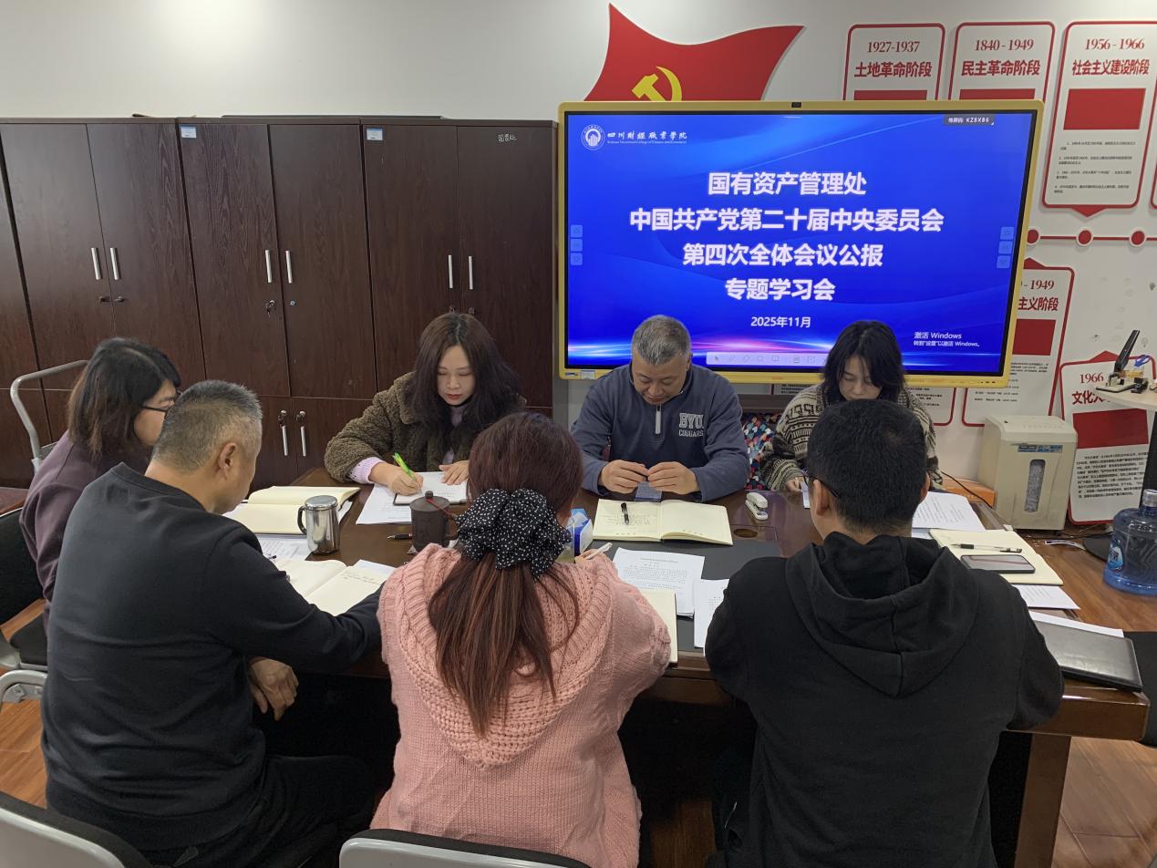 2025年11月3日,国有资产管理处党支部组织在明德楼813室召开中国共产党第二十届中央委员会第四次全体会议公报专题学习会,国资处所有教职工参会,深入领会全会精神,凝聚奋进“十五五”的思想共识与行动力量,切实将学习成果转化为履职尽责的实际实效。李如万处长带领全体人员...