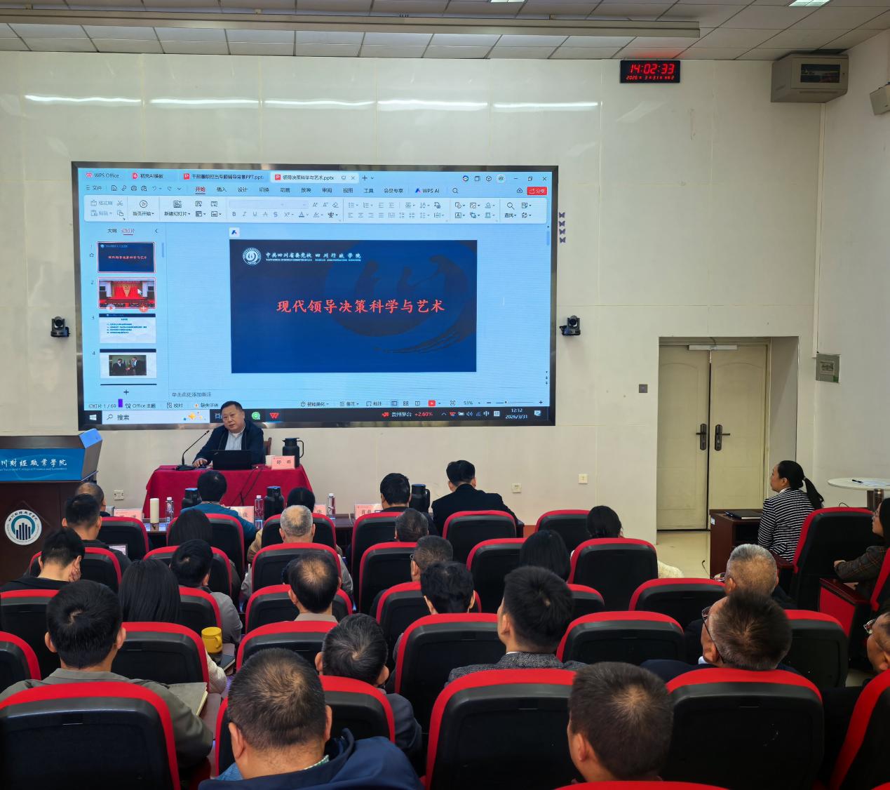 按照学院树立和践行正确政绩观学习教育的整体安排,以及学院关于干部教育培训的总体规划,3月31日,学院举办干部履职担当专题辅导讲座,邀请四川省委党校、四川行政学院公共管理教研部教授舒群,为全体党委委员、院领导和中层干部讲解现代领导决策科学与艺术。讲座由学院党委委员、副院长罗潇主持。...