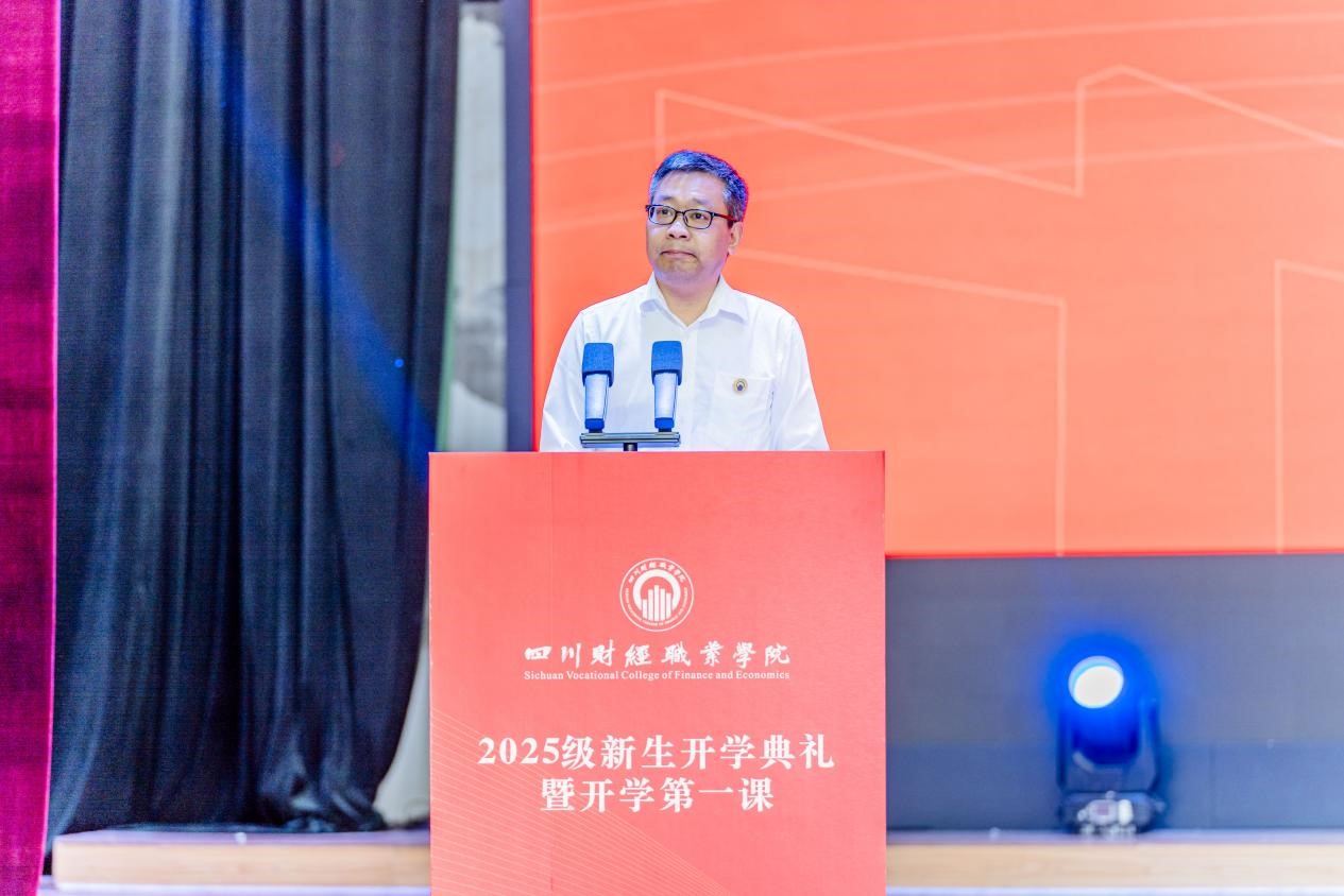 符刚代表学校欢迎2025级新同学,介绍了学校在师资力量、教学设施、校园文化等方面的办学条件,以及学科建设、人才培养、社会服务领域的成果,鼓励同学们善用资源、锤炼品德、提升能力,为未来奠基。他向新生提出三点期望:一是向下扎根,夯实立身之本,需深扎理论、筑牢技能、投身实践;二是向高攀登,追求卓越自我,要铸牢政治之魂、树立远大理想、永葆进取之心;三是向远奋进,汇聚前行力量,应心怀仁爱、践行实干、凝聚团队合力。他强调,“向下扎根” 是基础、“向高攀登” 是追求、“向远奋进” 是关键,三者层层递进、相互促进。希望同学们领会内涵,在大学及未来人生中,以奋斗擦亮青春底色,用行动书写无悔年华。