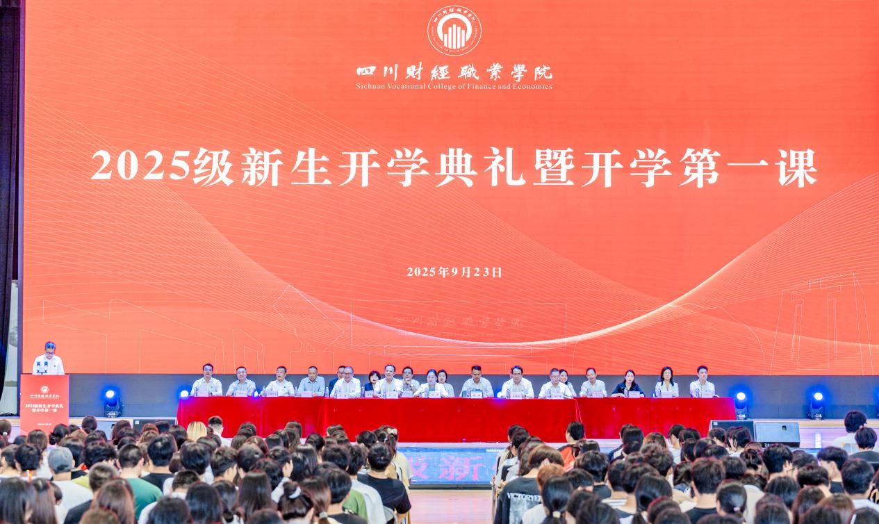 9月23日下午,学校2025级新生开学典礼在阳光体育馆隆重举行。学院党委书记张华,院长符刚,党委委员、副院长钟用、罗潇、肖兆飞出席典礼,各职能部门负责人、教师代表、校友代表、在校生代表及3000余名新生参加典礼,典礼由罗潇主持。