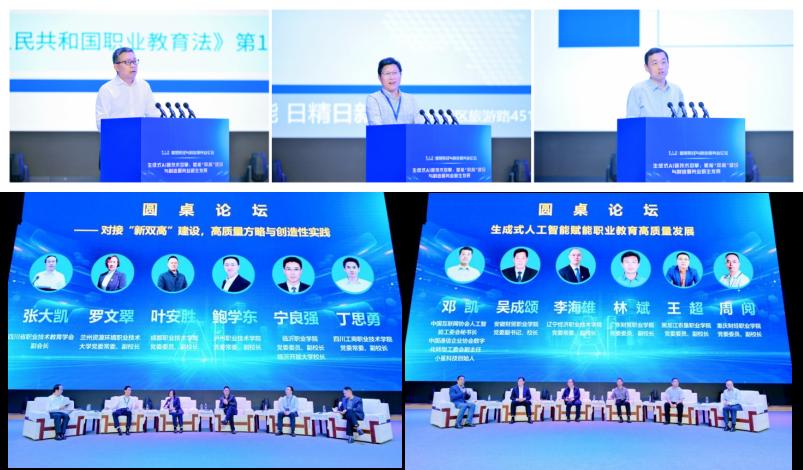 论坛还围绕“对接‘新双高’建设,高质量方略与创造性实践”、生成式人工智能赋能职业教育高质量发展两大主题进行交流研讨。