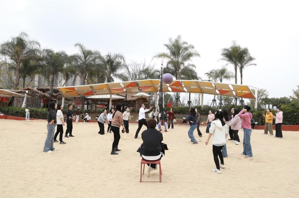 大家积极参与趣味沙滩排球等运动项目,舒展身体、释放压力。伴着湖畔微风,大家结伴健步而行,一边欣赏春日美景,一边挑战打卡小游戏,在欢声笑语中展现出积极向上、团结友爱的精神风貌。此次活动让女教职工们在忙碌工作之余放松身心,进一步增强了团队的凝聚力和归属感。