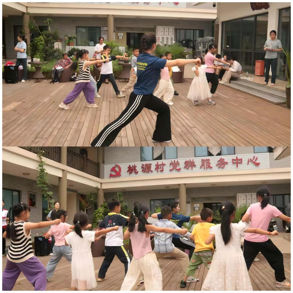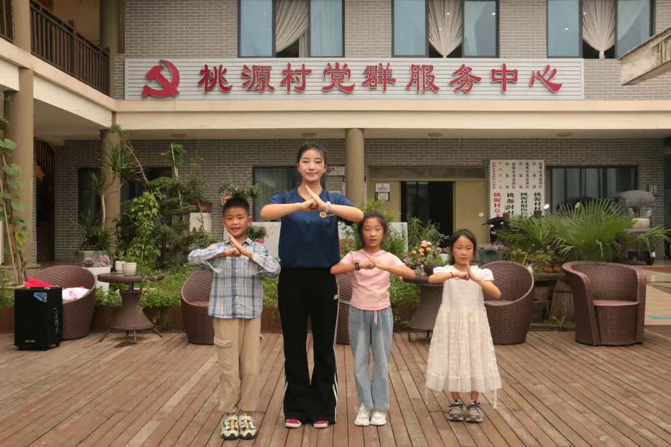 活动的高潮出现在教学结束时,三位小朋友主动拉住黄诗芸的手,簇拥在她身边,认真地效仿刚刚学到的武术抱拳礼。虽然孩子们的动作还略显稚嫩,但那认真而专注的眼神,却透着对传统文化深深的热爱和尊重。这一刻,镜头定格,乡村儿童与非遗技艺的温暖联结被永远记录下来。