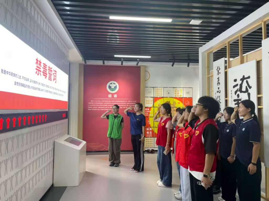 参观结束后,在实践团负责人黄诗芸的带领下,全体人员庄严举起右手,齐声宣读禁毒誓词:“我是中华民族的儿女,不忘耻辱,坚决与毒魔作斗争,珍爱生命,拒绝毒品,保证不吸毒、不贩毒、不制毒、不种毒,积极检举吸贩毒行为,自觉抵御毒品的侵蚀,积极投身于禁毒斗争行列,我将履行禁毒誓言,为国家禁毒事业作出自己应有的贡献。”铿锵有力的誓言在活动现场回荡,展现出实践团队成员抵制毒品、参与禁毒的坚定信念。