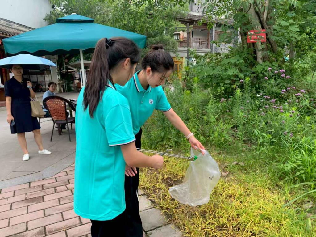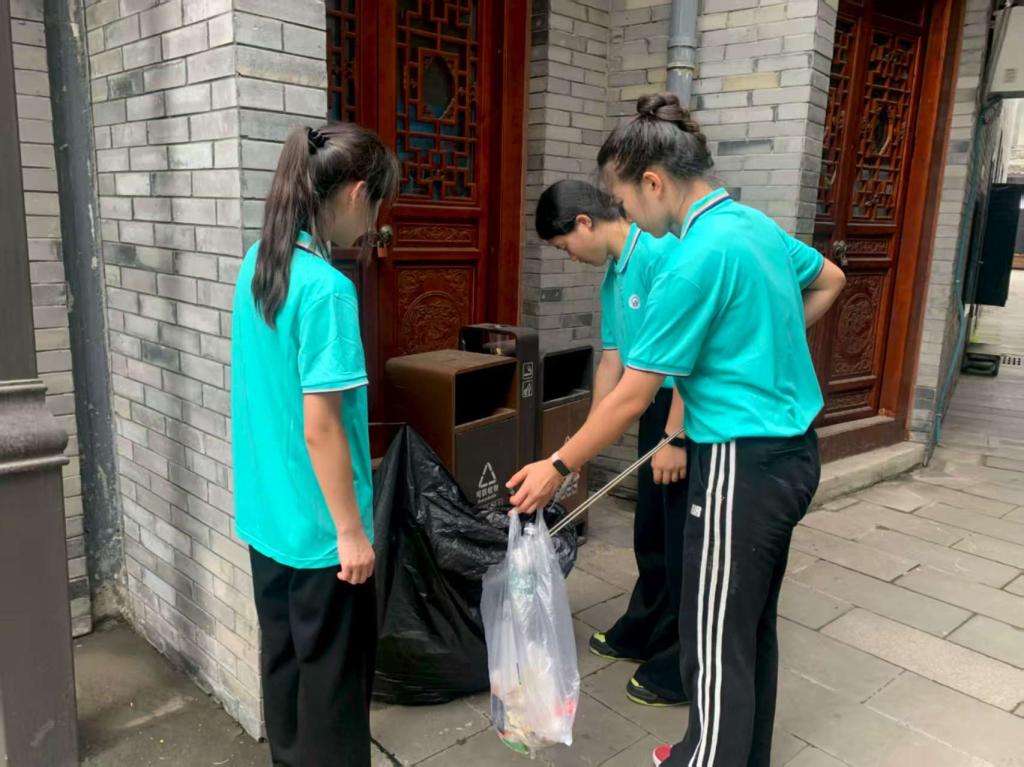 7月2日下午,实践团成员身着统一队服,手持垃圾袋、垃圾夹等清洁工具,分组有序地在洛带古镇的街道上展开环境清洁行动。队员们穿梭于古朴的街巷、角落之间,仔细搜寻着遗落在石板路上的塑料袋、废弃纸巾、食品包装袋等垃圾。