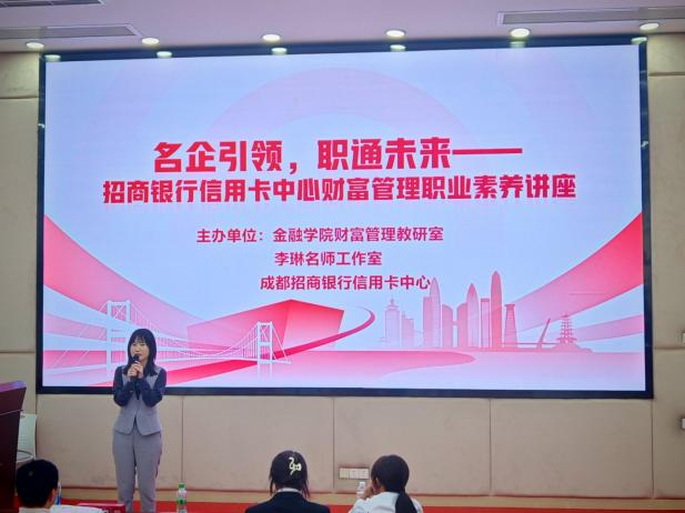 为深入贯彻落实立德树人根本任务,助力学生职业生涯发展,2025年10月11日下午,由李琳名师工作室指导,金融学院财富管理教研室组织举办的财富管理职业素养讲座在至诚楼B213顺利开展。本次活动特邀招商银行信用卡中心(成都)的企业导师及我校优秀校友,围绕职业规划、职场转型、企业文化建设等内容展开分享,助力学生明确职业方向,提升职业素养。