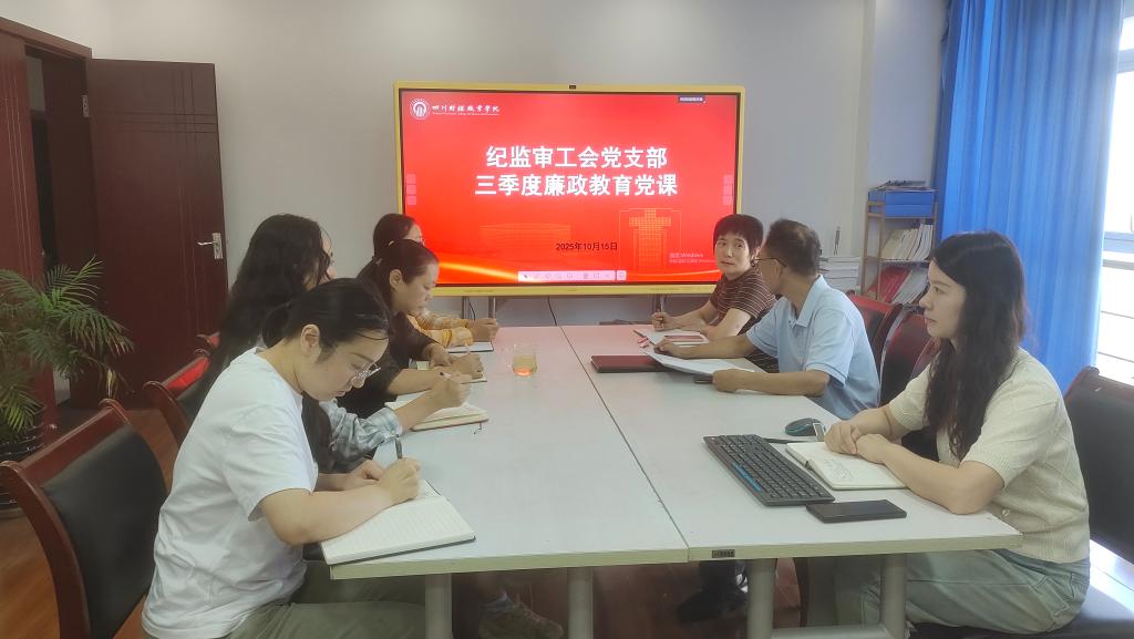 为深入贯彻落实全面从严治党战略方针和党风廉政建设工作要求,持续筑牢支部党员廉洁自律思想防线,结合学院工作安排,10月15日,纪监审工会党支部在明德楼1005室组织召开三季度廉政教育主题党课,支部全体党员参与此次党课。