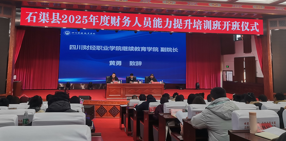 为提升石渠县财政局及其下属单位财务人员的专业能力和实务操作水平,由四川财经职业学院主办的“石渠县2025年度财务人员能力提升培训班”于2025年10月27日在石渠县青少年活动中心顺利开班。石渠县县委常委、县政府常务副县长张宏,石渠县财政局党组书记、局长韩建,四川财经职业学院继续教育学院副院长黄勇出席开班仪式。