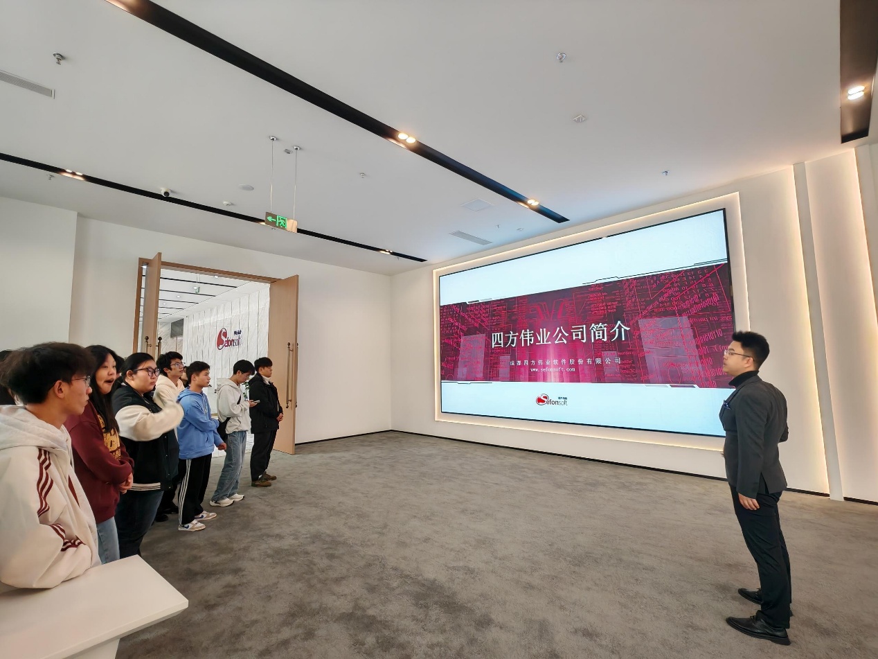 活动伊始,在曾涛的带领下,师生们首先参观了公司展厅。通过生动的图文展示、实物陈列与细致讲解,大家全面了解了四方伟业的发展历程、企业文化、核心业务板块及行业领先地位,对大数据产业的宏观发展格局建立了初步认知。