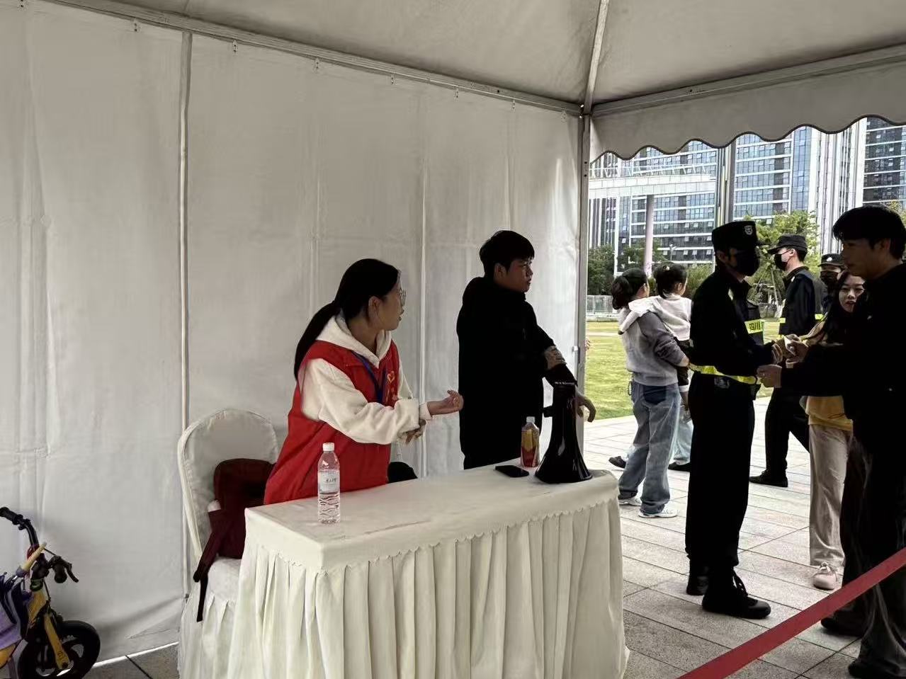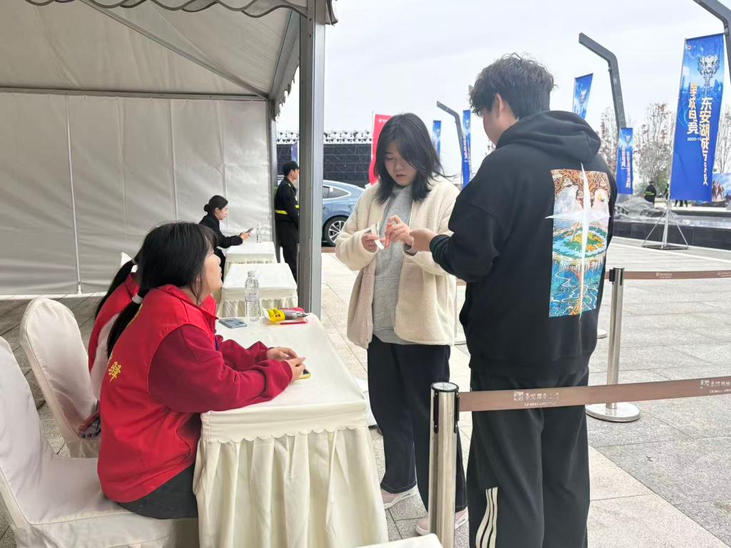 活动当天志愿者们身着统一志愿服装,分岗协作,全程坚守。在入场核验岗,志愿者们专注细致,逐一核对观众预约二维码,确保信息准确无误,为后续流程筑牢基础。