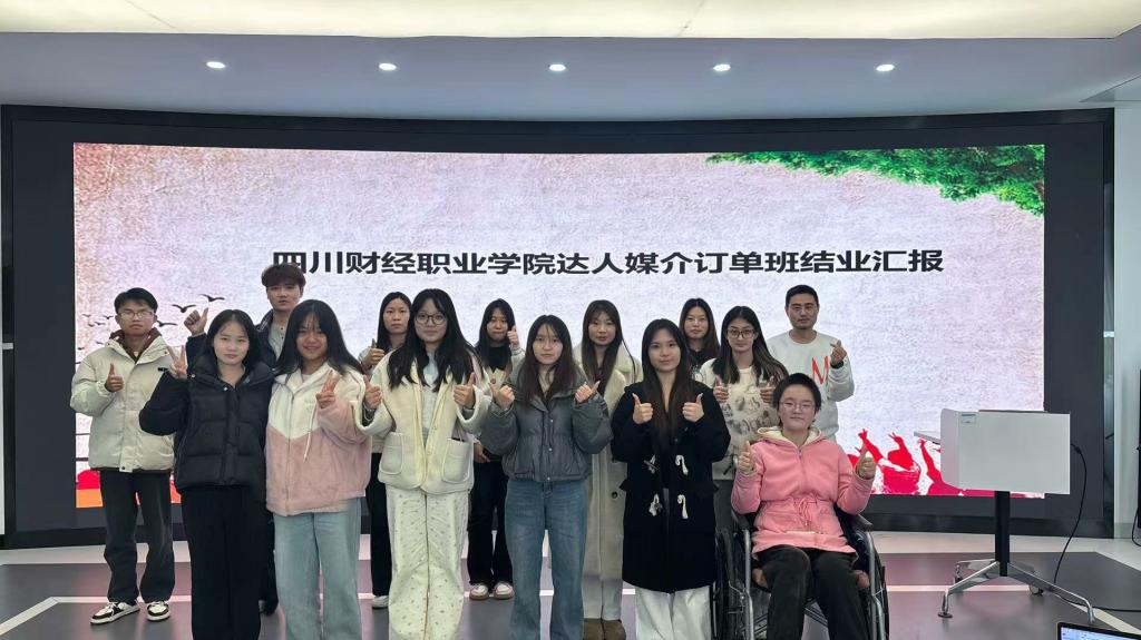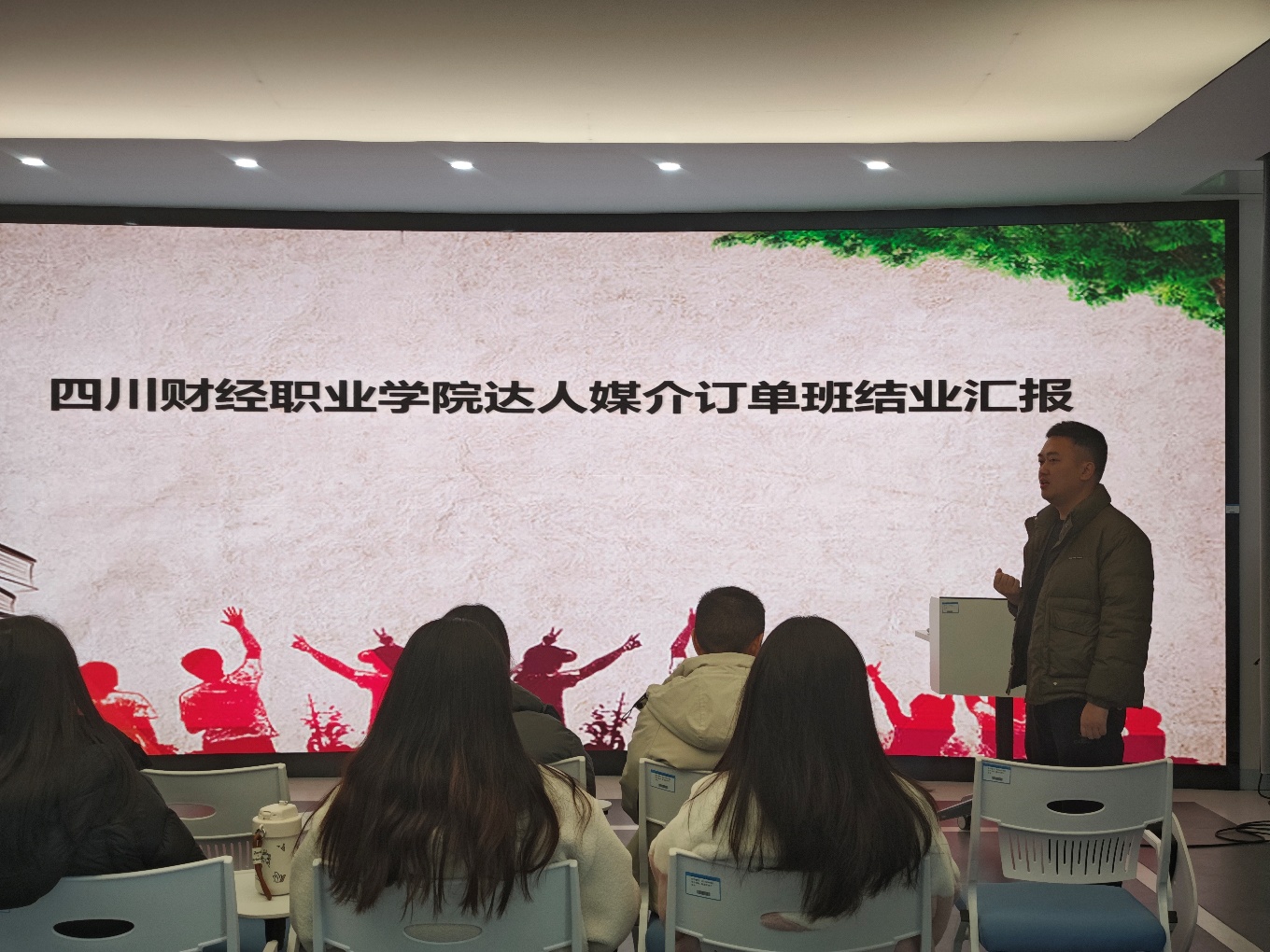 2025年12月16日,信息学院商务数据分析与应用专业与新数人(成都)科技有限公司联合举办的“达人媒介实战订单班”结课汇报在A201教室顺利举行。本次汇报由新数人(成都)科技有限公司苏悟主持,信息学院王曦副院长、商务数据分析与应用教研室主任陈怡桉到场出席,企业导师杜洋与专业教师陈怡桉共同担任点评嘉宾,订单班全体学员参与汇报展示。