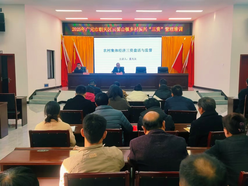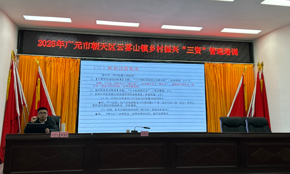 为深入贯彻落实农村集体“三资”管理专项整治工作要求,进一步提升基层财务人员业务能力和数字化管理水平,四川财经职业学院继续教育学院副院长黄勇、会计学院董光友老师于2025年12月16日赴广元市朝天区云雾山镇开展2025年乡村振兴“三资”管理专题培训会,会议由镇人大主席董昌华主持。云雾山镇辖区各村(社区)书记、文书、财务管理人员等,共47余名基层骨干参加培训。