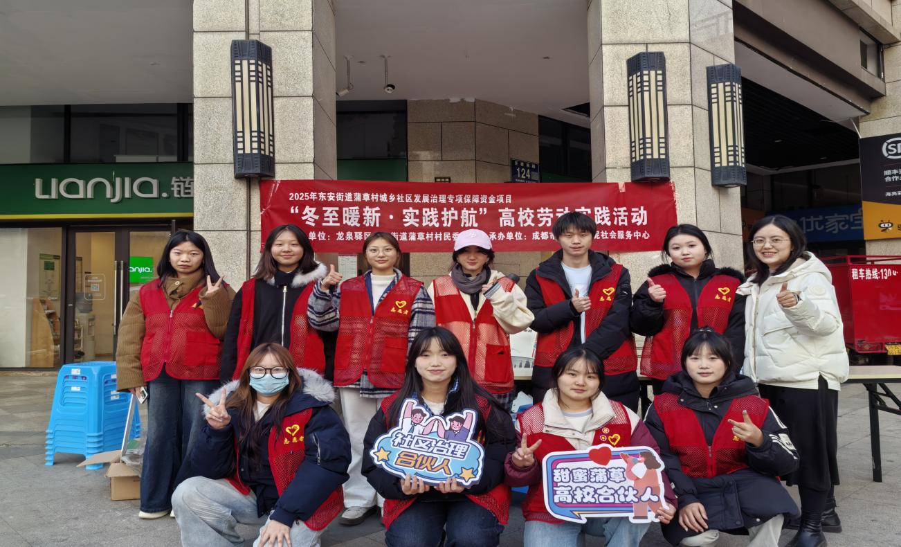 寒冬凛冽,温情不减。2025年12月16日下午,由四川财经职业学院会计信息管理教研室与信息学院团总支联合主办,东安街道蒲草村城乡社区协办的“冬至暖新·实践护航”冬日高校实践活动,在蒲草村社区广场温情启幕。来自2025级会计信息管理专业的数十名学子,将专业知识融入社区服务,为辛勤工作在冬日户外的环卫工、外卖员、快递员等“城市守护者”送上了一份独特的冬日温暖。