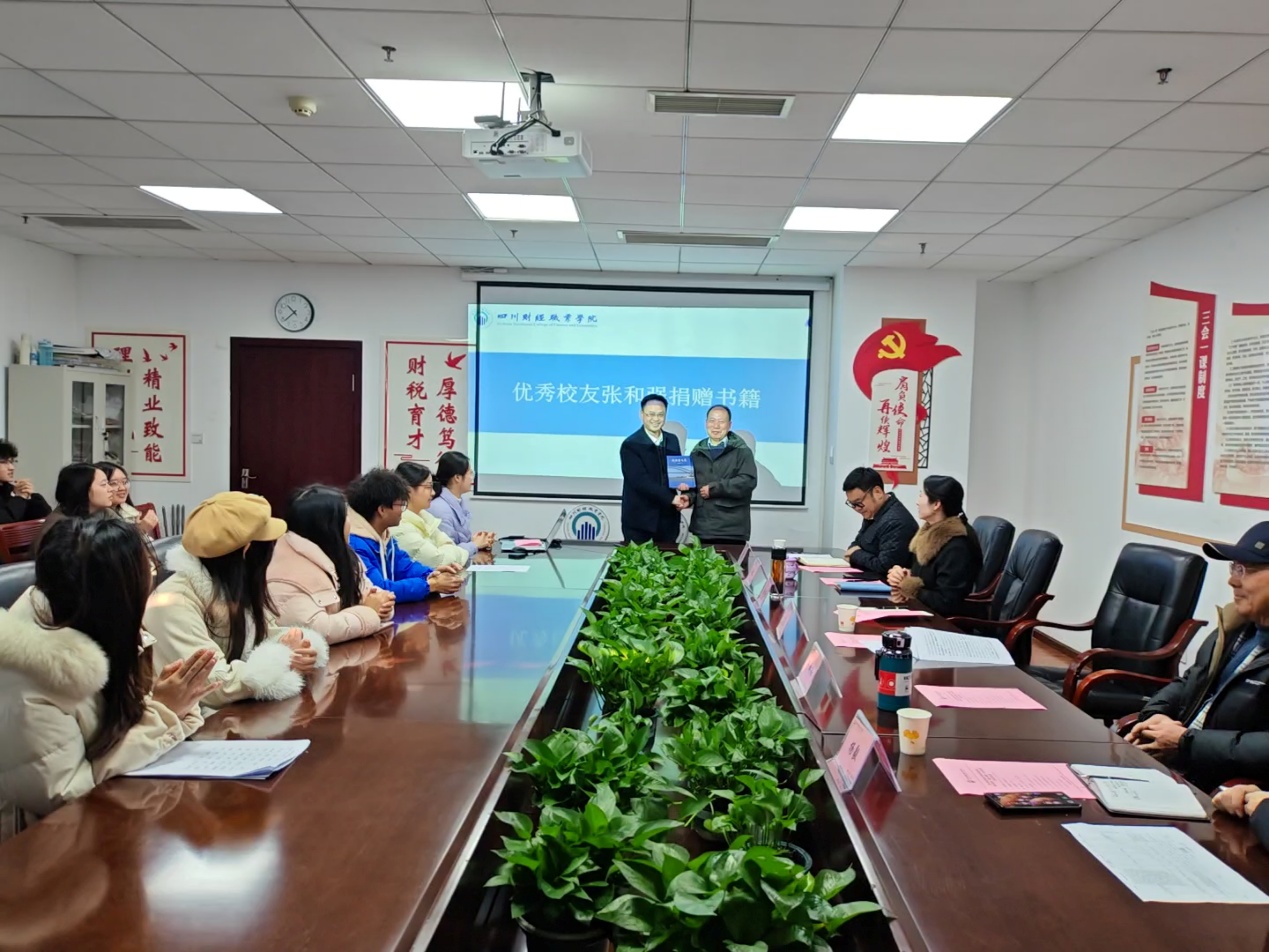 2025年12月16日,四川财经职业学院财税学院举办“情系母校·暖心捐赠·共话发展”校友座谈会。学院78级财政4班校友张和强、余坤和重返母校,与学校纪委书记李洋,财税学院院长杨毅、党总支书记陈露、学工科长季宁宁及40余名师生代表齐聚一堂,共叙情谊、共谋发展。座谈会由季宁宁主持。