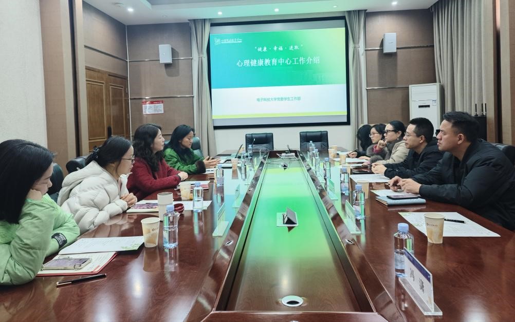 为深化心理健康教育体系建设,提升心理育人工作专业化水平,12月18日上午,四川省妇女儿童发展促进会心理健康专委会常务副主任兼秘书长及工作人员、我校学生工作部部长及心理健康专职教师赴电子科技大学清水河校区开展专题交流调研,与电子科技大学心理健康教育中心主任和心理健康专职教师开展了深入交流和学习。