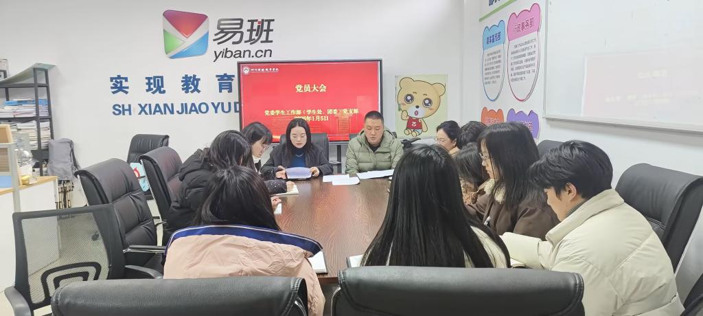 1月5日上午,党委学生工作部(学生处、团委)党支部在易班办公室召开2026年第一次支部党员大会。会议由支部纪检委员廖中强主持,支部全体党员参加会议并开展学习。