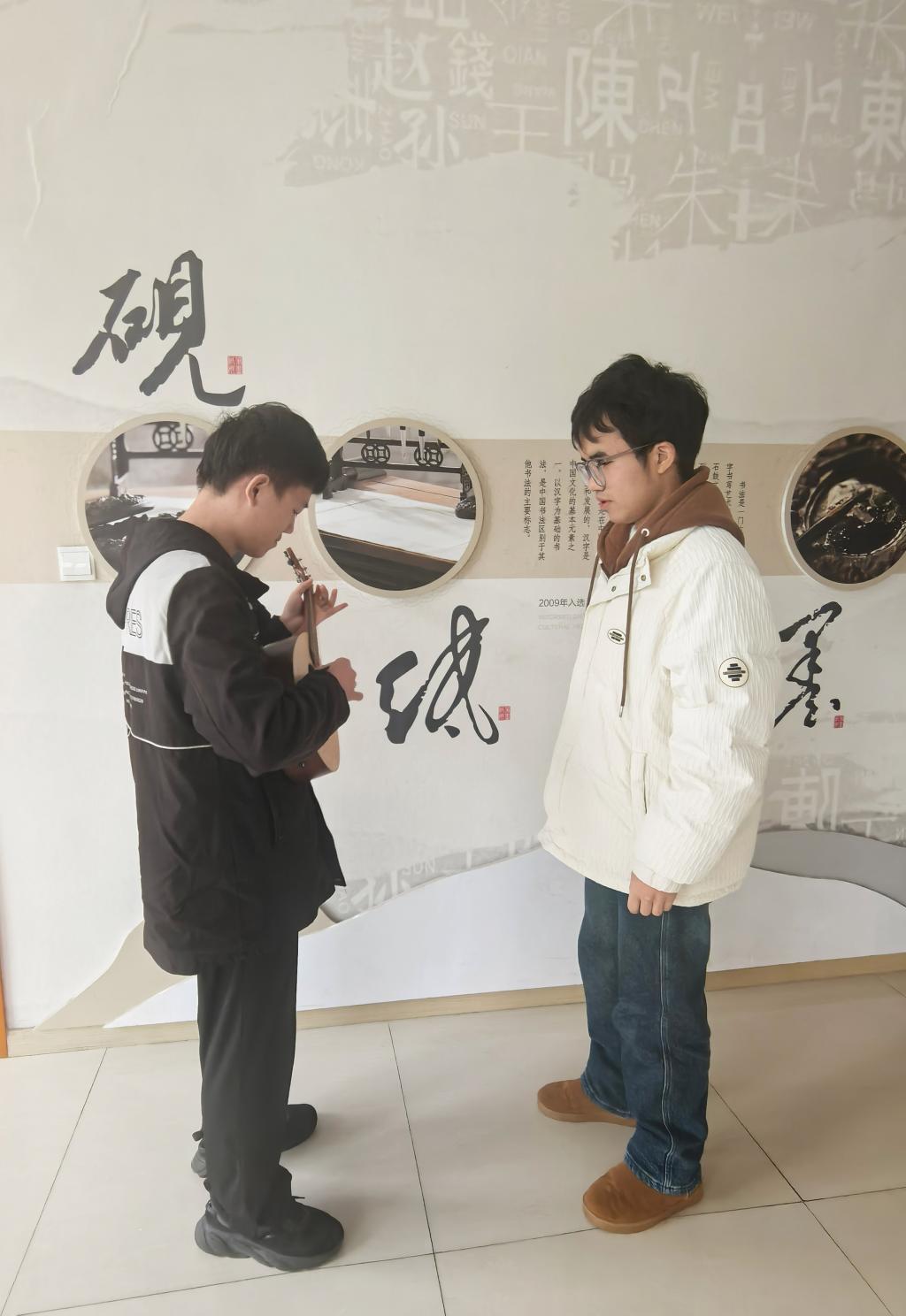 近日,四川财经职业学院中华小四弦公选课课后特色互助活动温情启幕。作为深受学生喜爱的公选课,中华小四弦共开设两个班级,此次课后特色活动以“跨班携手,以乐共进”为核心,组织两个班级的同学齐聚一堂,通过互相指导、协同练习的方式提升演奏技艺,让传统民乐的韵味在课后时光中流淌,更让互助共进的氛围浸润校园。活动现场,两班同学自发结对、自由分组,形成了“强带弱、优互补”的良好氛围。2班的涂同学陪着1班的胡同学跟着节拍器反复练习《鸿雁》的过渡乐句,不时提醒:“这里的节拍要稳,稍微慢一点,和后面的旋律衔接才自然。”这样一对一的互助场景在活动现场随处可见,同学们在交流中解决问题,在协作中共同提升。