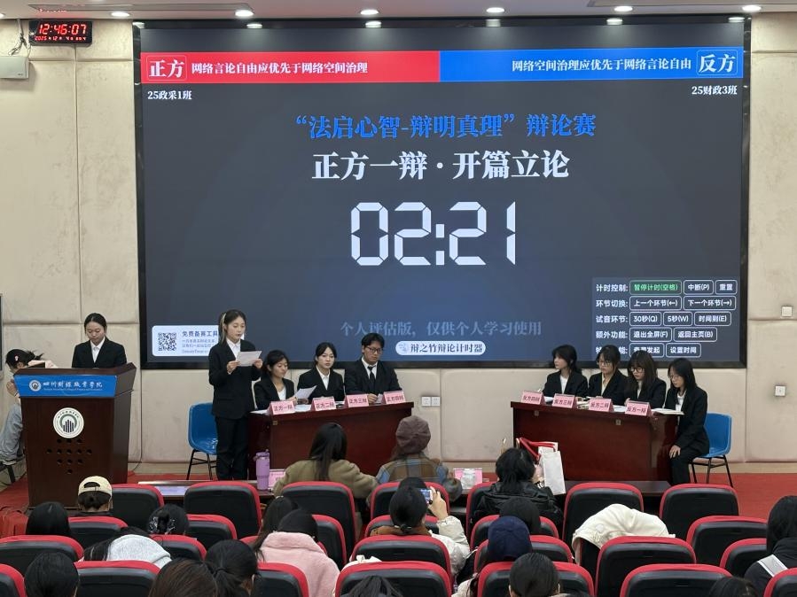 21.12月4日中午,财税学院在B212教室开展了以“网络言论自由与网络空间治理孰应优先”为主题的辩论赛复赛。