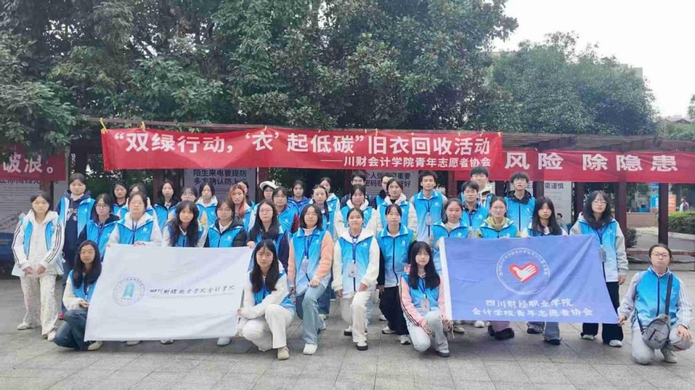 9.11月4日,会计学院青年志愿者协会发起的“双绿行动,‘衣’起低碳”旧衣回收活动,在学生公寓门口、海亮彩悦府小区及中铁国际城小区同步开展。