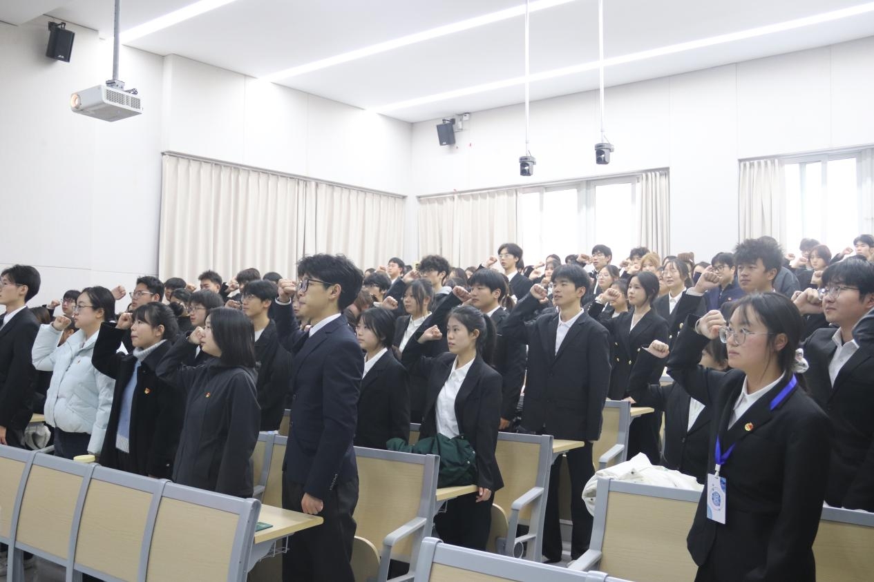 24.12月8日,工商管理学院在至诚楼B213举行新团员入团仪式暨共青团纪律处分条例学习会。学院党总支书记梁小晓、团总支书记王欣然,相关辅导员、学生干部及109名新团员参会。