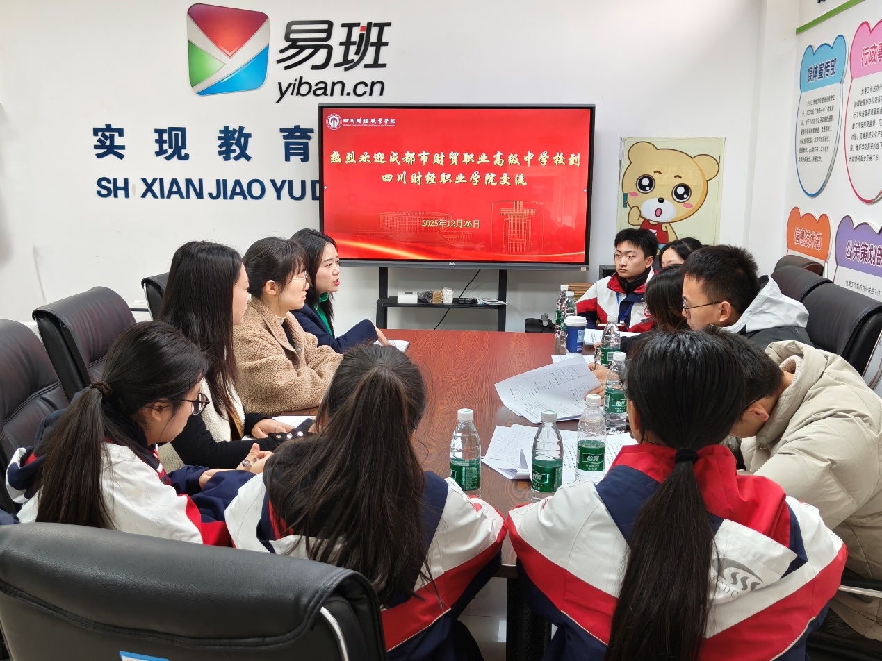 12月26日,成都市财贸职业高级中学校师生一行8人到校开展共青团工作交流座谈,双方围绕学校共青团工作品牌打造、暑期“三下乡”社会实践活动开展深入研讨,聚焦项目建设的组织实施、经费保障、成果展示等关键环节进行分享。