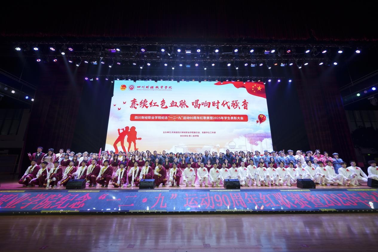 12月9日晚上,四川财经职业学院在阳光体育馆隆重举办纪念“一二·九”运动90周年红歌赛暨2025年学生表彰大会,学院党委书记张华及5000余名师生齐聚一堂,共忆峥嵘岁月、表彰先进典型、唱响青春旋律,凝聚起财经报国、实干担当的磅礴奋进力量。