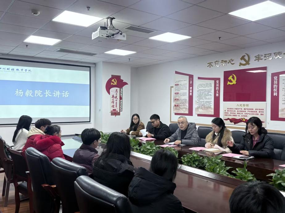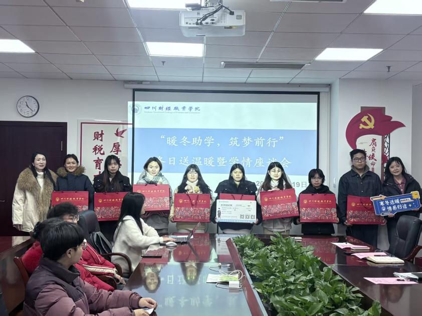 2026年1月19日上午,四川财经职业学院财税学院在明德楼512会议室,举办“暖冬助学,筑梦前行”冬日送温暖暨学情座谈会。学院院长杨毅、党总支书记陈露、副院长罗艾、团总支书记季宁宁、学校资助中心教师吴琳、辅导员代表胡桑,与16名家庭经济困难学生代表齐聚一堂,以爱为桥,共赴这场暖冬之约。
