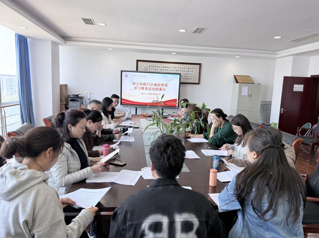 张晋红书记首先传达了党中央、省委及学校党委关于树立和践行正确政绩观学习教育的相关会议精神和工作要求,强调在“十五五”开局起步的关键节点,开展此次学习教育是今年党的建设的重要任务,对于巩固拓展党内集中学习教育成果、推进全面从严治党、推动学院教育事业高质量发展具有重大意义,全体党员干部要切实提高政治站位,深刻认识学习教育的紧迫性和必要性。