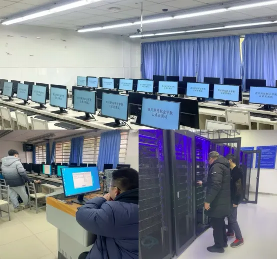 在数字化转型浪潮下,为破解传统教学终端运维复杂、资源共享不足、互动体验单一等难题,四川财经职业学院以“赋能教学创新、服务师生发展”为核心,于2024年正式启动“云桌面”建设项目。作为智慧校园升级的关键工程,该项目需部署终端1179台,覆盖全校教学单位及22个实训实验室,涉及硬件采购、网络升级、系统部署等多重环节,时间紧、任务重、技术要求高。现代教育与信息技术中心党支部坚持党建引领,党员冲锋在前,带领项目团队攻坚克难,仅用50天便圆满完成建设任务,打造了高效、便捷、智能的智慧化教学新空间。