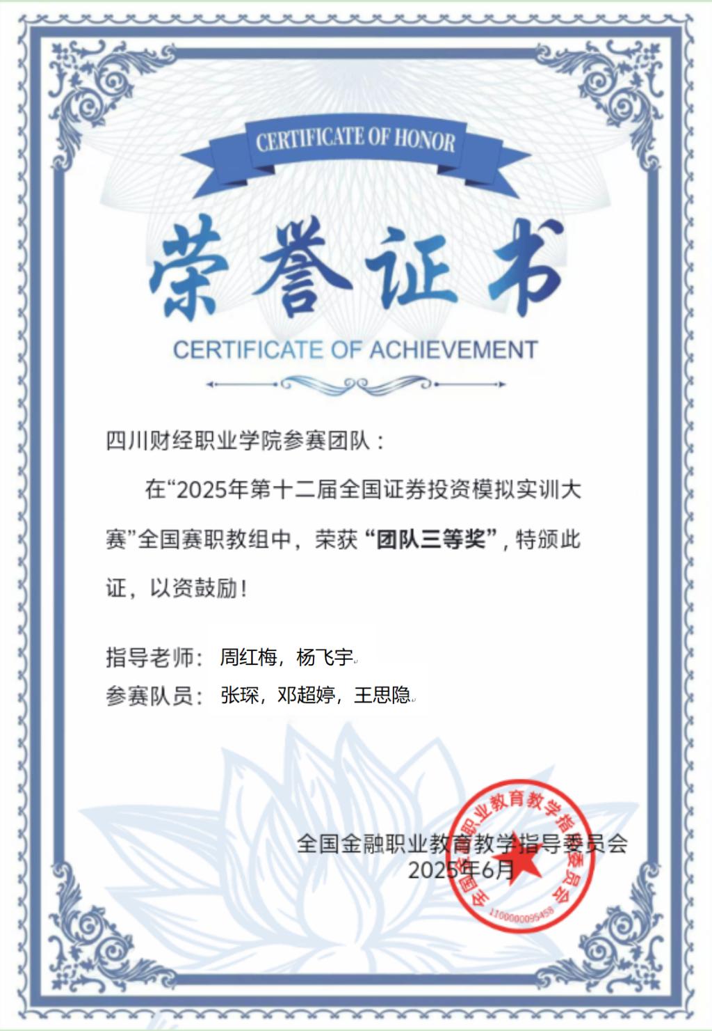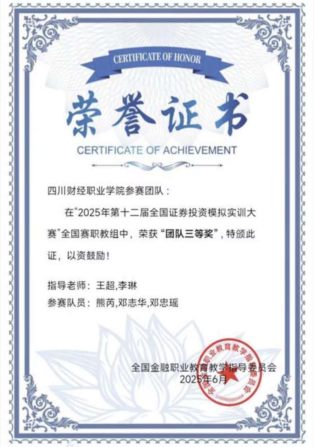 2025年第十二届全国证券投资模拟实训大赛全国赛获奖