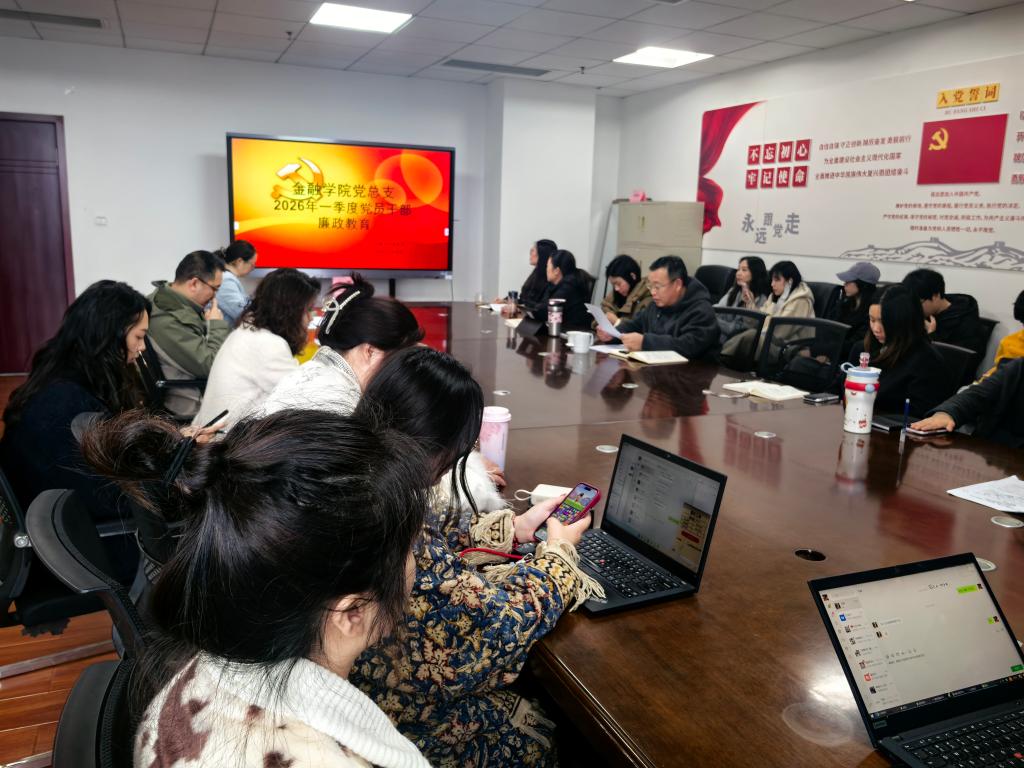 为深入学习贯彻党的二十大精神,全面落实二十届中央纪委五次全会部署要求,纵深推进全面从严治党,3月17日,四川财经职业学院金融学院党总支组织全体教职工开展2026年第一季度廉政教育专题学习。本次学习以“纠风治乱为民、廉洁从教立身”为主题,通过政策研读、案例剖析、警示教育片观看等形式,引导全体教职工筑牢思想防线、坚守廉洁底线,为学院高质量发展营造风清气正的政治生态。