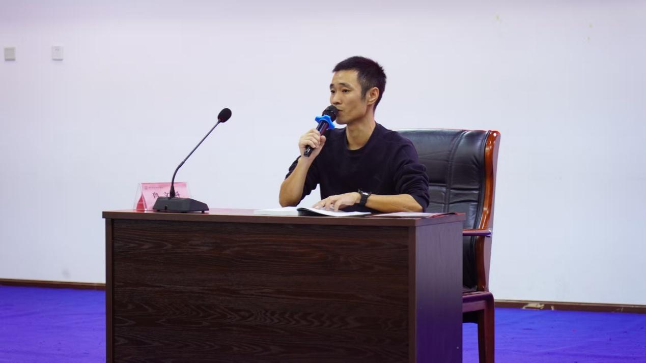 随后,罗兰杰老师进行补充发言。他重申了校纪校规的严肃性,呼吁同学们加强学习《学生手册》,牢记学校相关规章制度。会上,罗兰杰老师通报了近期校内学生因刷单被诈骗、违纪面临受到处分的案例,指出违纪违法行为对个人及家庭会产生深远影响,并寄语同学们要严守法律与校规底线。