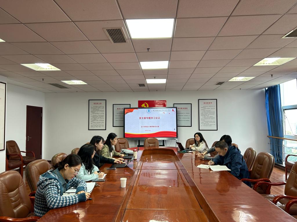 为持续深化党风廉政建设,推动党的创新理论与会计教育事业深度融合,近日,会计教研室党支部开展 10 月专题学习。会议以 “警示教育筑防线、理论学习强根基” 为主题,由党支部书记岳秀敏主持,全体党员教师参会,通过 “观影鉴案 + 理论研学” 的双重模式,实现思想淬炼与行动引领的有机统一。