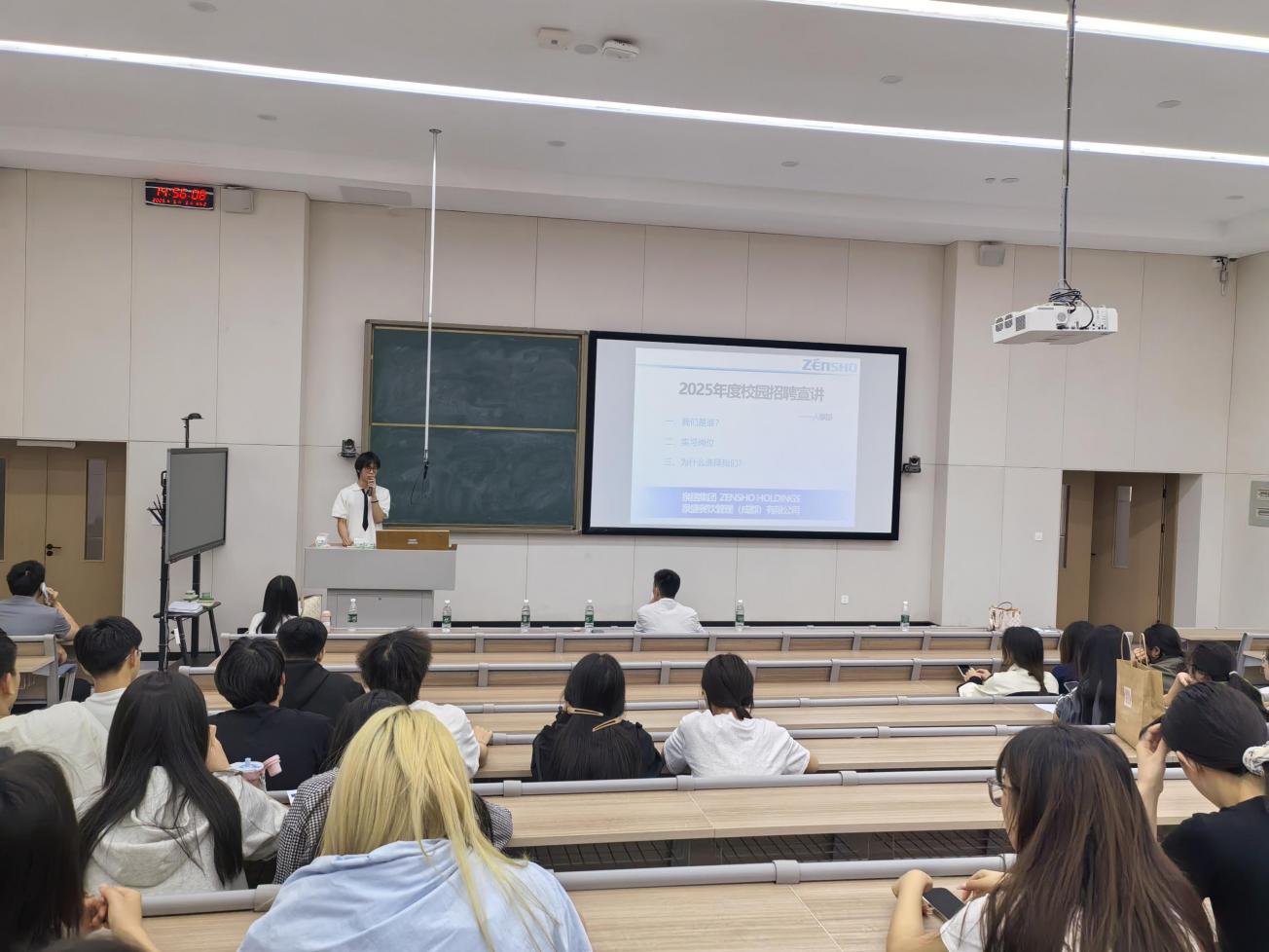 首先泉盛餐饮管理(成都)有限公司人力资源部刘清清介绍了泉盛餐饮管理(成都)有限公司的业务范围、组织结构、公司的雄厚实力和多元化发展。她进一步分享公司的业绩成就和所获得的荣誉,让同学们对公司有了更加全面深入的了解。