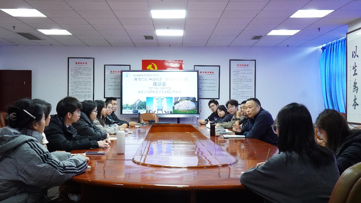 2025年11月20日,四川财经职业学院会计学院“语”你有约,院长书记面对面座谈会在明德楼613会议室顺利举行。会计学院院长李代俊、党总支书记杨晓荣、副院长胡小凤、团总支书记罗兰杰与各学生代表齐聚一堂,围绕学生学习、生活、校园管理等热点问题展开深入交流,搭建起师生沟通的坚实桥梁。