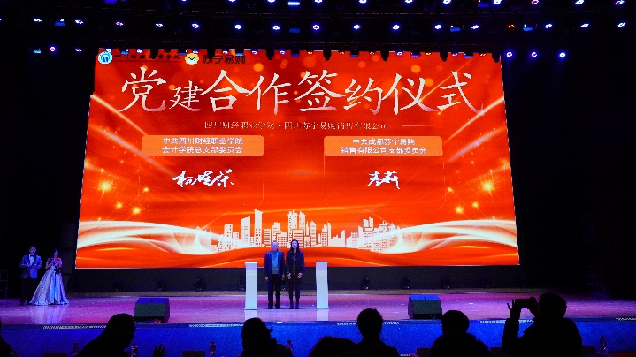 晚会现场,四川苏宁易购销售有限公司与学院签署了党建联建与校企合作协议,标志着我院校企协同育人迈出坚实新步伐。