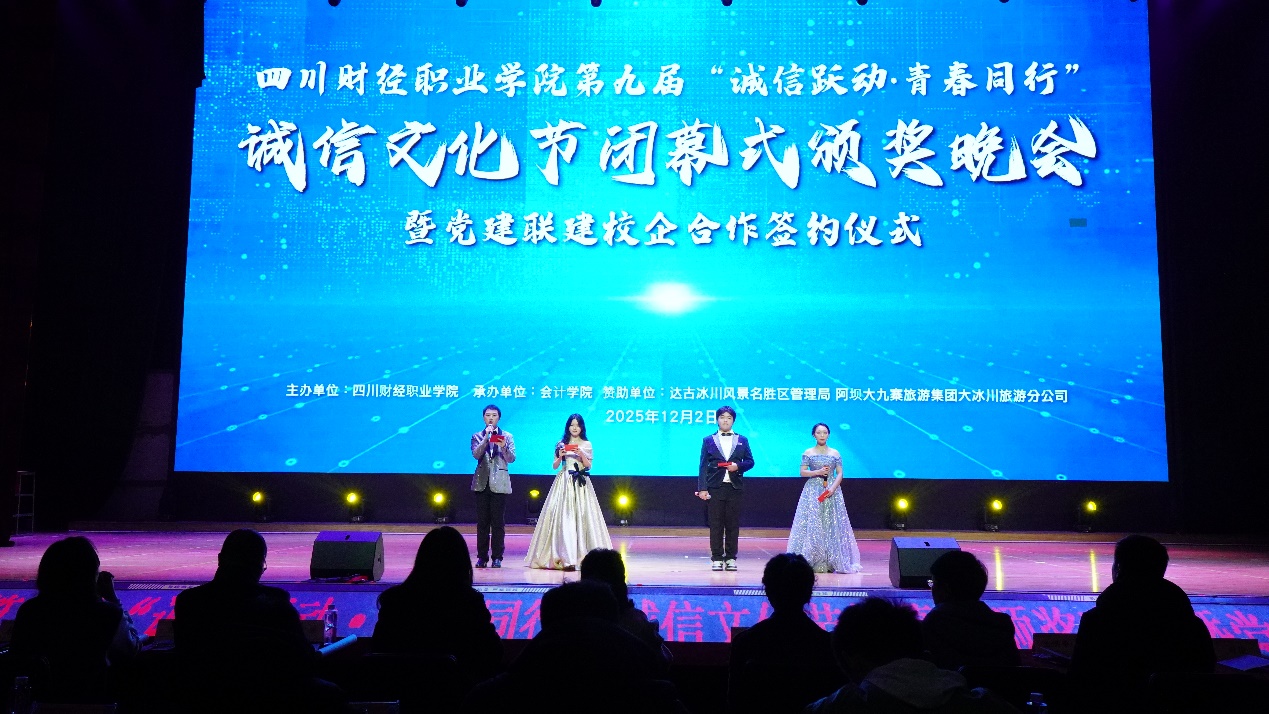 2025年12月2日晚,四川财经职业学院第九届“诚信悦动·青春同行”诚信文化节闭幕式颁奖晚会暨党建联建校企合作签约仪式圆满落幕。
