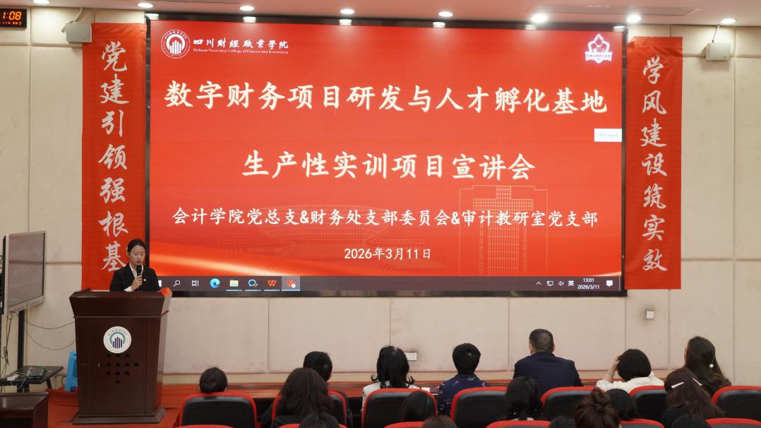 为深入推进产教融合,提升学生专业实践能力,2026年3月11日中午1点在B213教室,由会计学院党总支、财务处党支部委员会与审计教研室党支部联合主办的“数字财务项目研发与人才孵化基地生产性实训项目班(第三期)宣讲会”隆重举行。本次活动旨在推动课堂教学与岗位实操深度融合,帮助学生更好地对接行业需求。