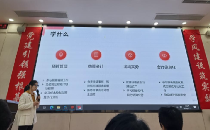 宣讲会在主持人曹月圆同学热情洋溢的开场中拉开帷幕。党委委员、学院副院长李代俊,财务处处长邱永芳,会计学院党总支书记杨晓荣,财务处副处长黄媛,会计学院副院长曾海帆等领导嘉宾齐聚一堂,共同见证这一重要时刻。