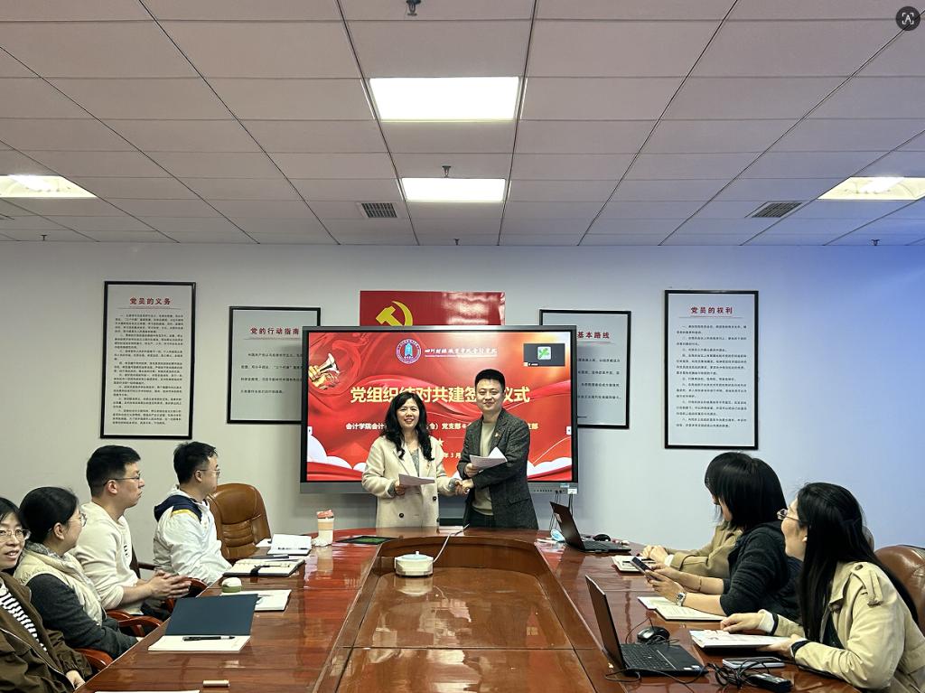 为进一步探索创新党建工作模式,构建结对帮带、双向促进、共同提升的基层党建新格局,2026年3月31日,会计学院会计教研室(珠算协会)党支部与会计学院学生第一党支部在明德楼613会议室举行结对共建签约仪式。会计学院党总支副书记张玮出席仪式,两个党支部全体党员参加会议。