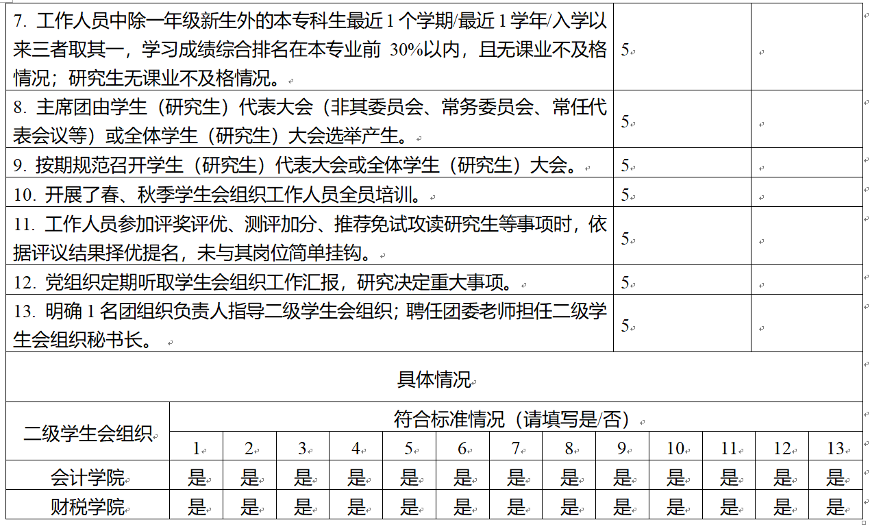 (三)每年12月,二级学院学生会要通过书面和集中会议方式向校级学生会述职,校级学生会应结合日常工作和年度述职对二级学院学生会进行考核,考核结果应予公开。